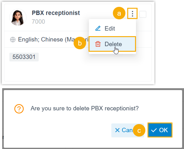 AI receptionist. - In the drop-down list, click Delete.