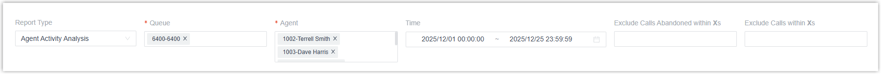 Exclude Calls within Xs Specify the talk duration to exclude short answered calls.