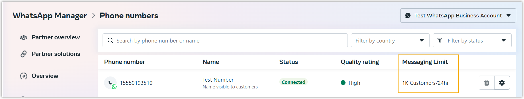 - Sender: Select the associated WhatsApp phone number for message sending.