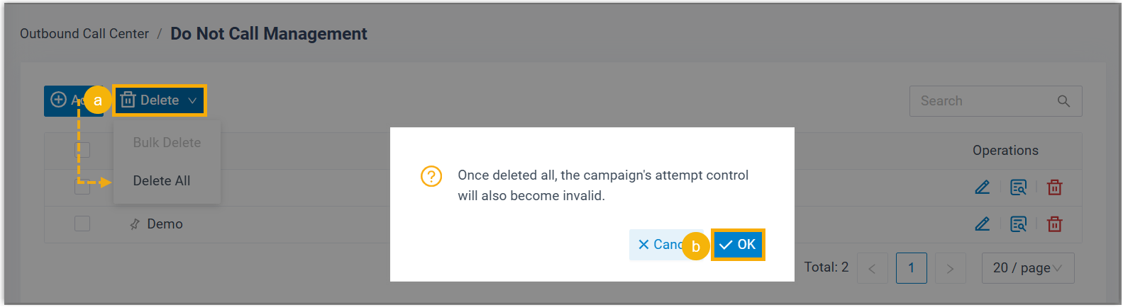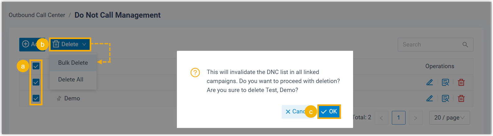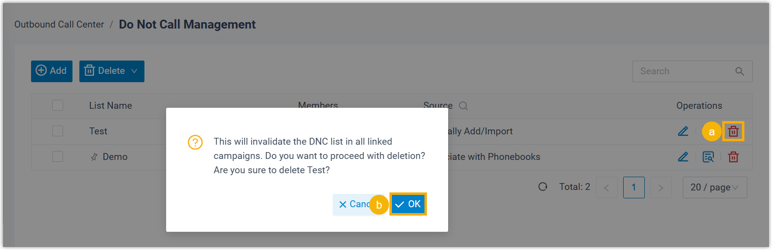 This topic describes how to delete DNC lists from Yeastar P-Series Software Edition.