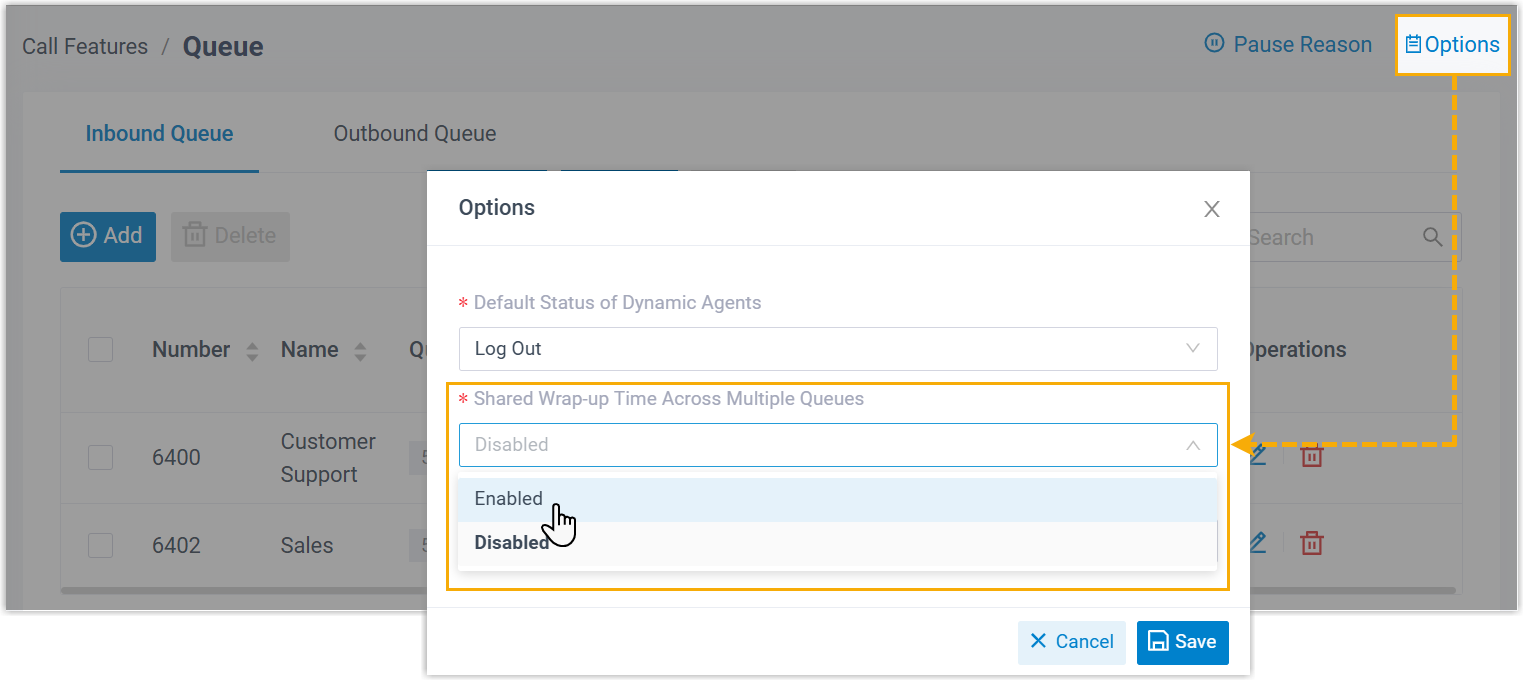 3. In the Shared Wrap-up Time Across Multiple Queues drop-down list, select Enable
