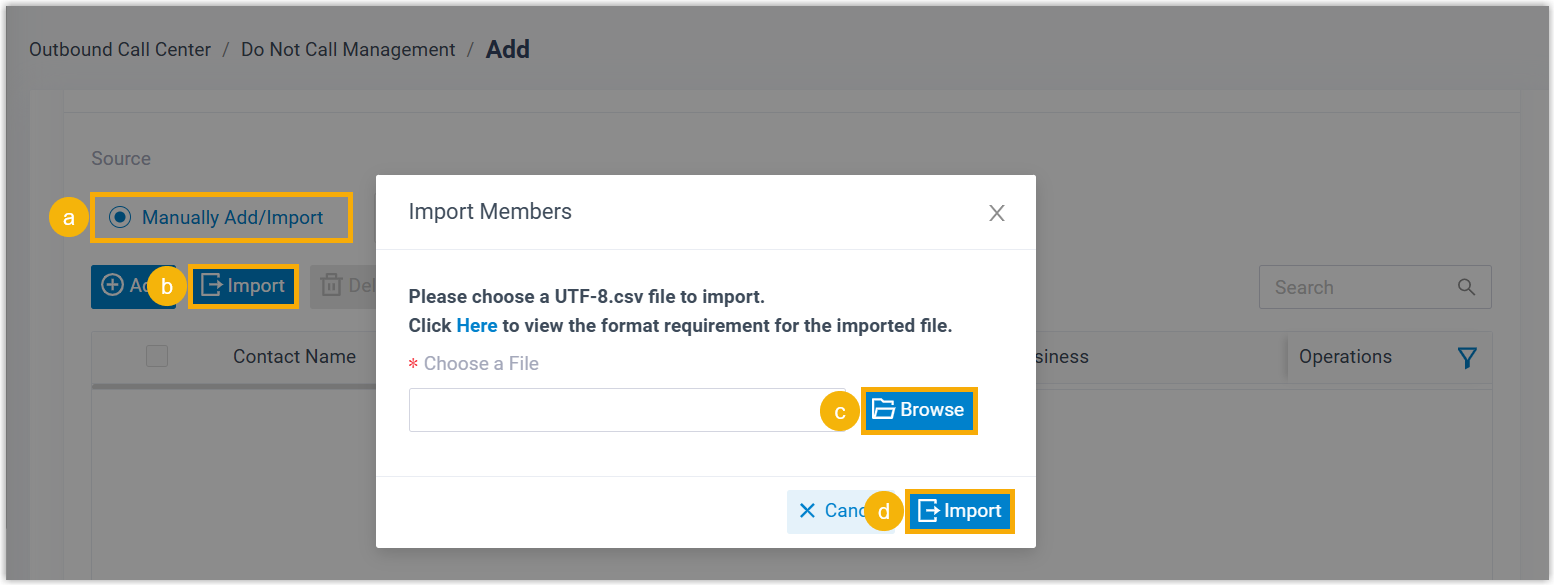 We recommend that you export DNC contacts data to a CSV file first, and use the file as a template to start with. In this way, you can save time and effort.