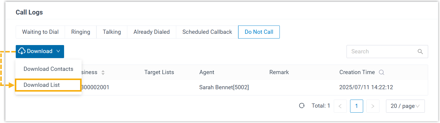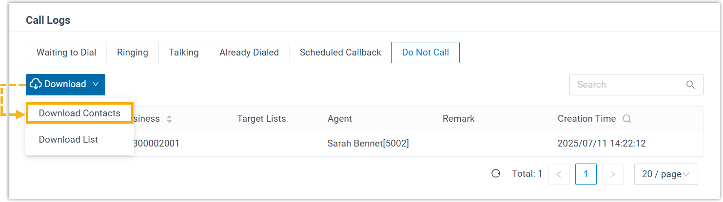 scroll down to the Call Logs section. - Under the Do Not Call tab, download the DNC data