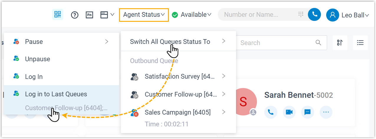 As an agent of a queue or multiple queues, you can change your own status in a specific queue or in all queues on Linkus Web Client or Desktop Client. This topic describes how to log in to and out of queues, pause and unpause queue calls.