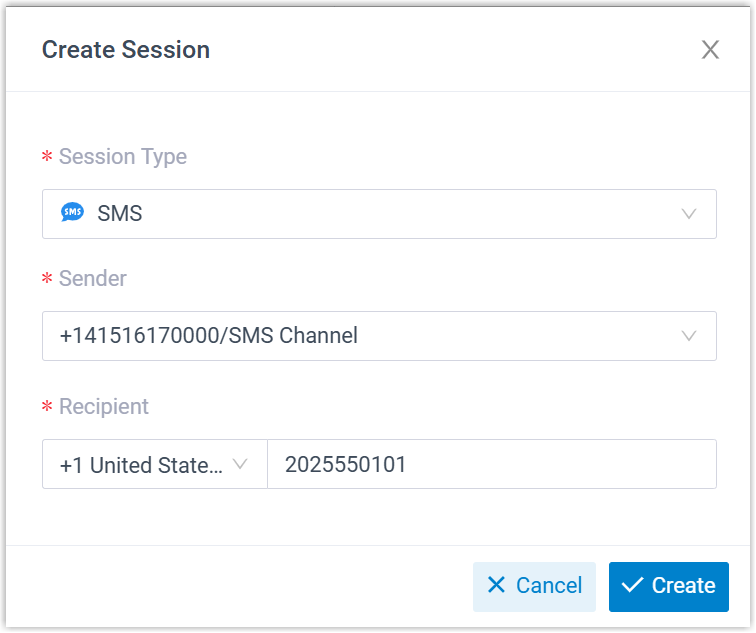 - Session Type: Select SMS.