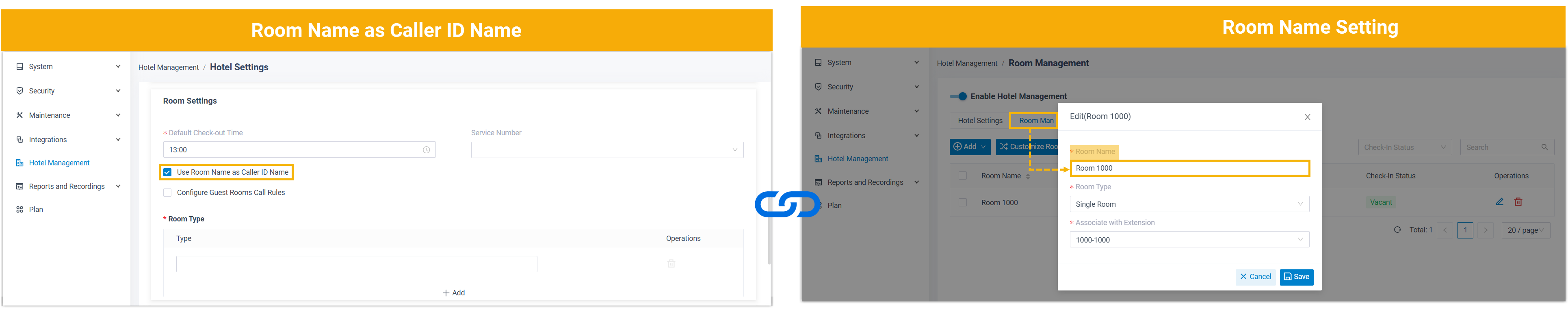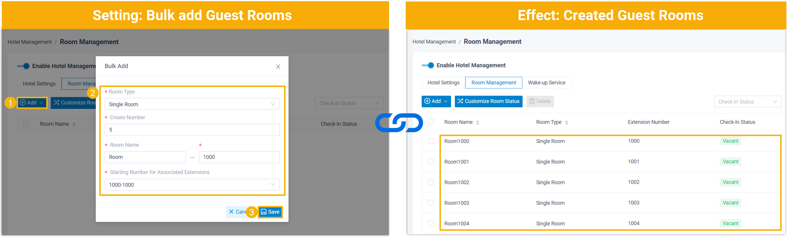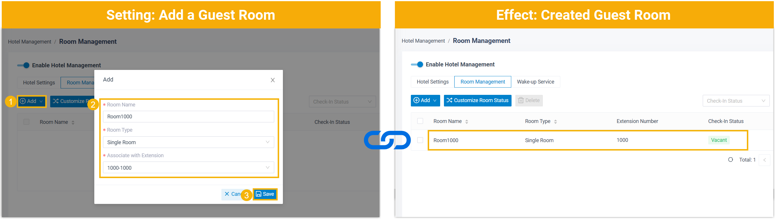 - Hotel service is set up on Yeastar P-Series Software Edition.