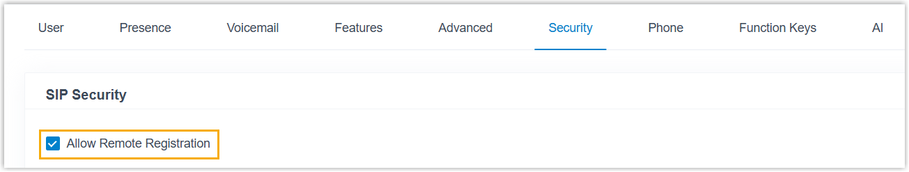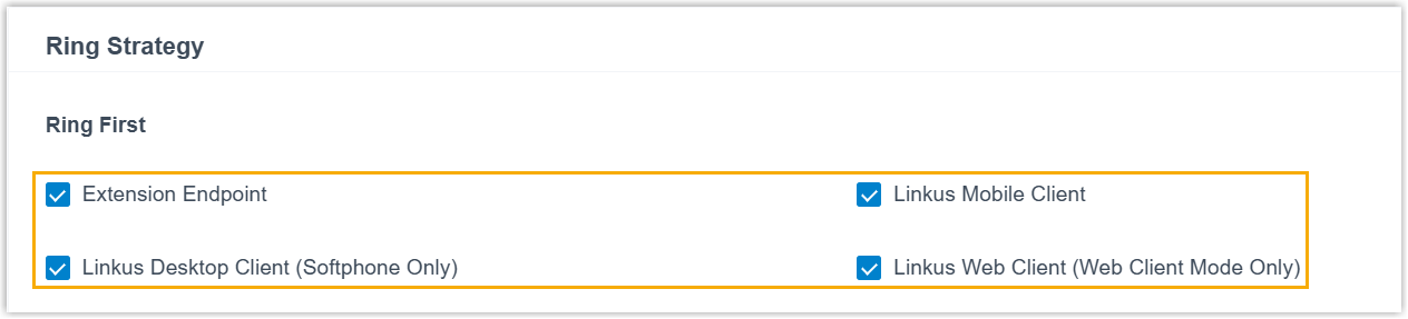 Simultaneous ring To ensure prompt response to visitors, configure the extension to ring on multiple registered devices at the same time. This allows the user to answer the call immediately from any available device. - Scroll down to the Ring Strategy section.
