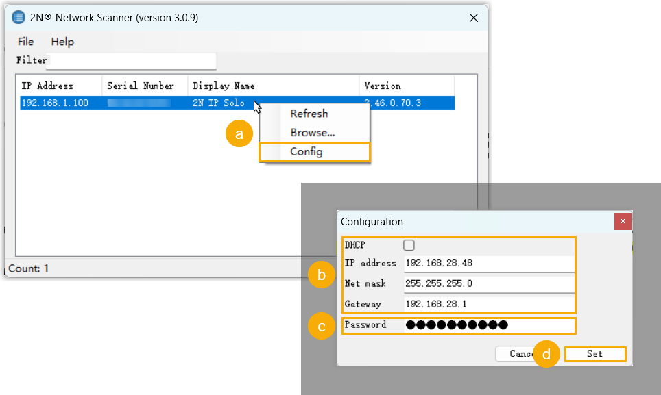 - Connect the 2N IP intercom to same local network (LAN) as your computer, then perform a factory reset.