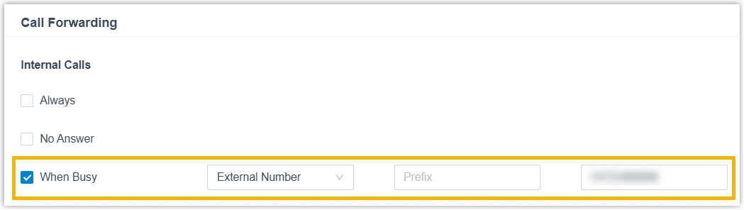 - In the drop-down list beside When Busy, select External Number as the forwarding destination.