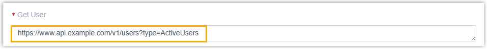 For example,https://www.api.example.com/v1/users?type=ActiveUsers - The default HTTP request method is