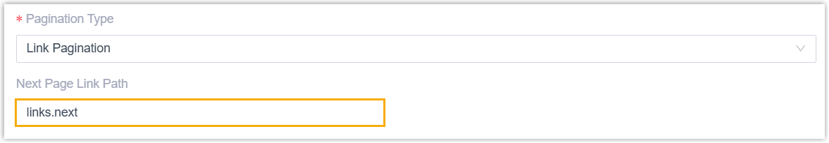 links.next) in the Next Page Link Path field to obtain the link for the next page of data.