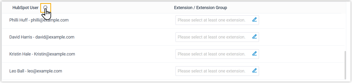 Step 2. Associate HubSpot CRM users with PBX extensions