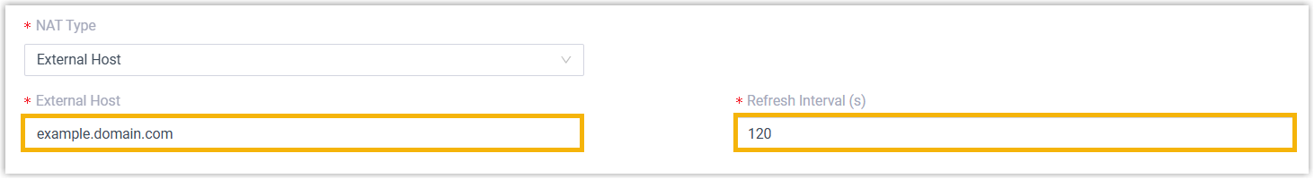example.domain.com. - Refresh Interval (s): Leave the default setting or change the interval (in seconds) for PBX to request the external host for public IP.