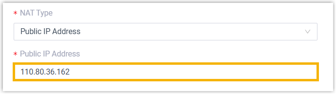 - In the Public IP (NAT) section, complete the