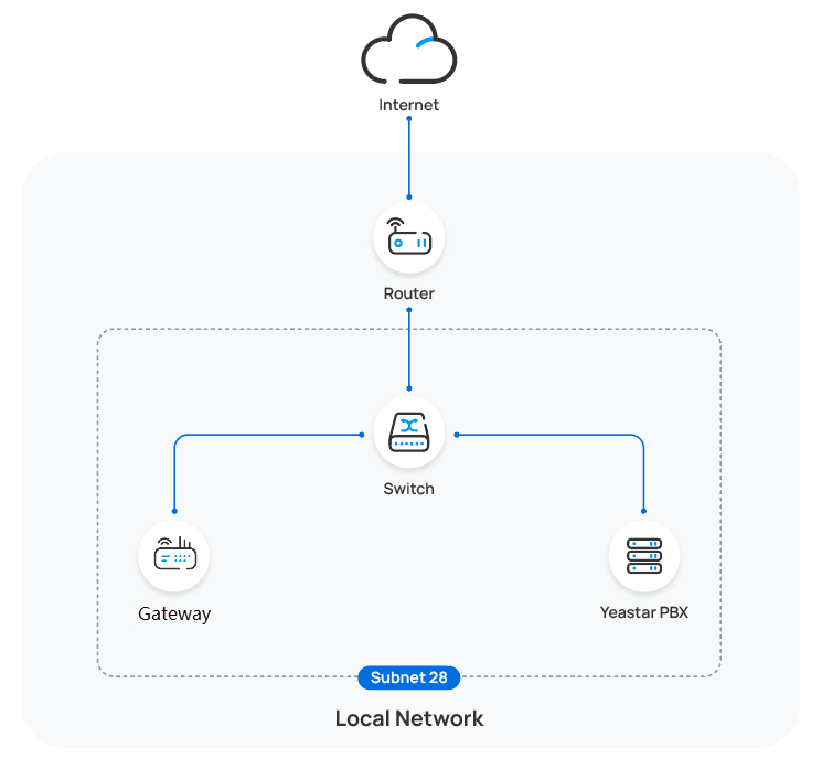 and the Yeastar PBX (IP: 192.168.28.39) are both deployed in subnet