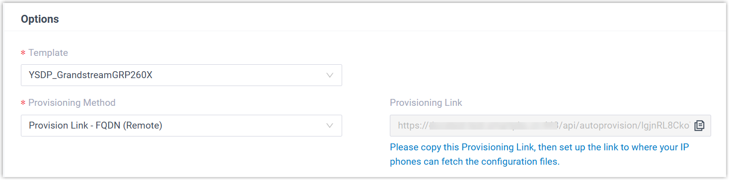 Link (Remote).The Provisioning Link field displays a provisioning link, which points to the location where the phone's configuration file is stored.Note: Note down the provisioning link, as you will need to use it later when configuring the DHCP server.