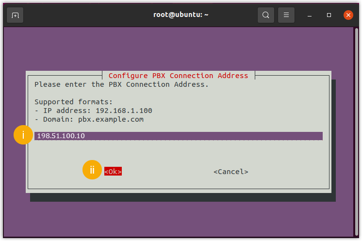 Action Instruction Configure PBX connection address - In the Configure PBX Connection Address