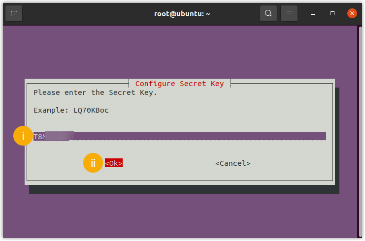 Configure secret key - In the Configure Secret
