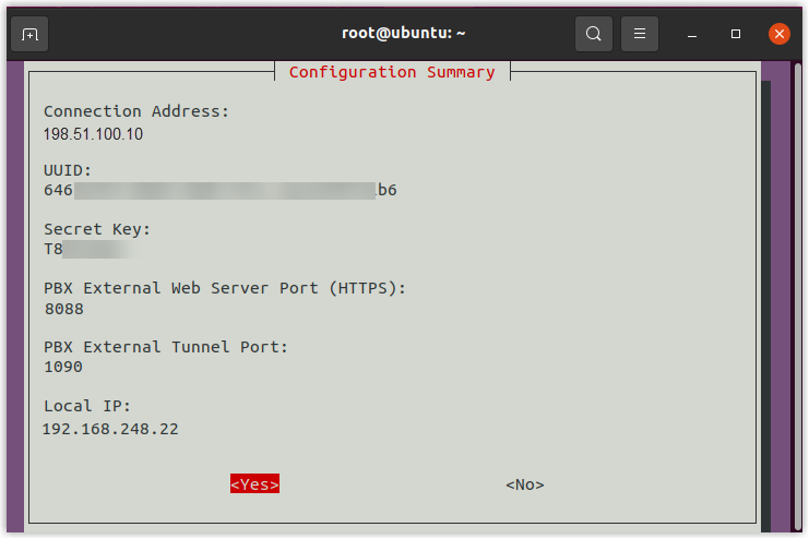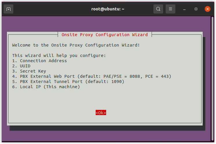 This topic takes Ubuntu operating system as example to introduce how to install Onsite Proxy on a host in the same subnet as the remote IP phones, and connect it to the Yeastar P-Series Software Edition during installation.