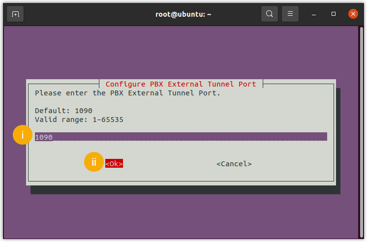 Configure PBX external tunnel port - In the Configure