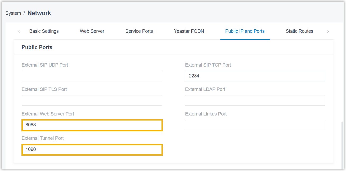 - Paste the external web server port obtained from PBX.
