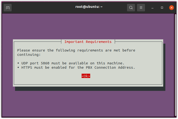 - Select <Ok> and