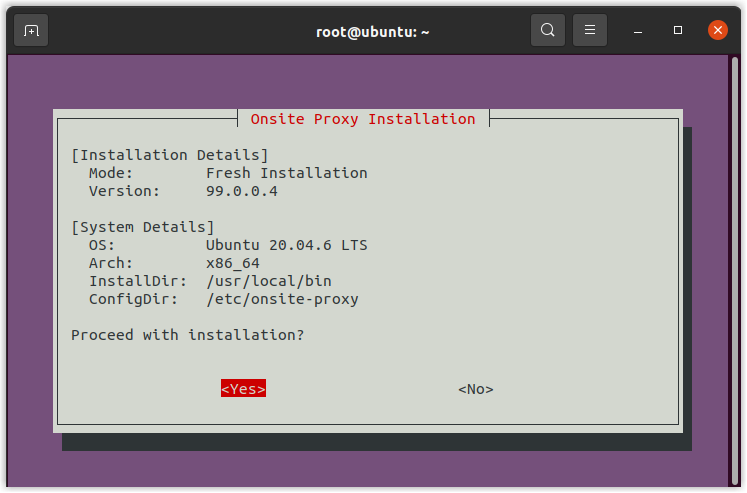 onsite-proxy-installto initiate the installation. - In the pop-up Onsite Proxy Installation