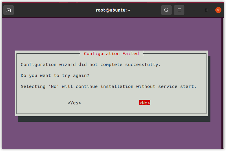 To skip configuration wizard, select <Cancel> in one of the following configuration windows, and select No in Configuration Failed window.
