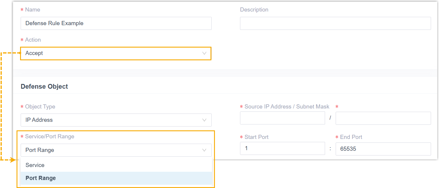 static defense rule is applied to a specific service or a port
