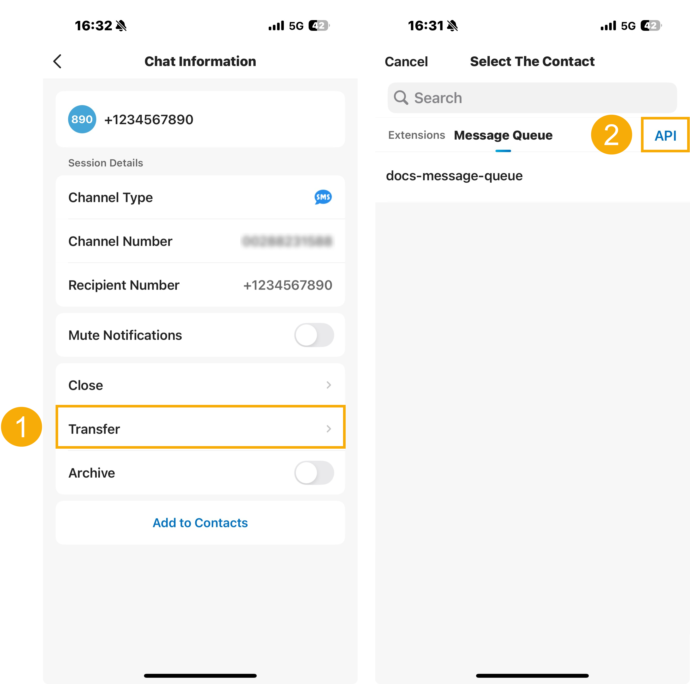- Transfer, close, archive, unarchive, or delete a message session.