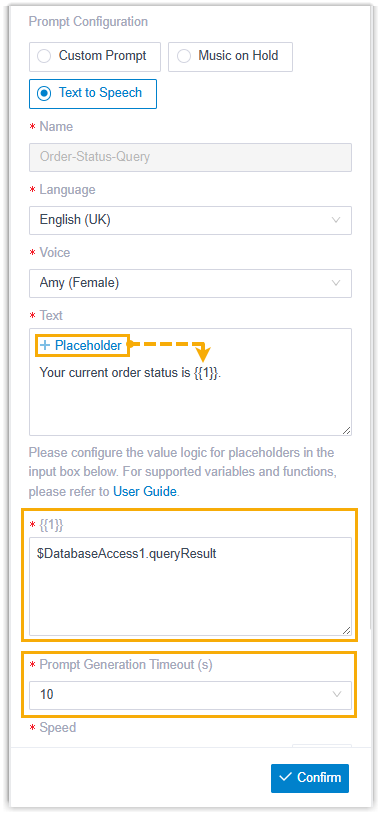- Added a configuration field Prompt Generation Timeout (s). If voice prompt is not generated within the specified timeout period, caller will be directly routed to the next component without hearing a prompt.