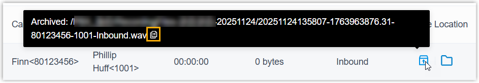 )The recording file is stored on PBX-attached storage.