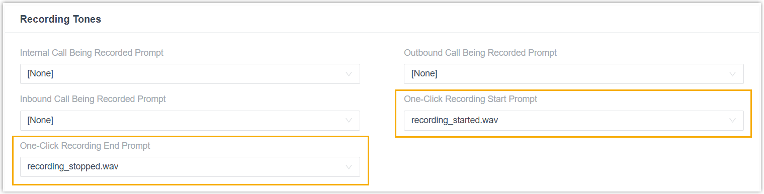 Auto Recording Added parameters start_promptandend_promptfor interfacesautorecord/getandautorecord/update, which can be used to query or set the prompt that will be played when authorized extension users start or stop recording during a call.Voicemail Added a parameter uidfor interfacesvm/query,vm/get,vm/download,vm/update, andvm/delete, which can be used to query associated CDR ID, or to filter voicemails by CDR ID. - Added the following API events for the PBX system event notification.For more information, see Developer Guide - API Events.