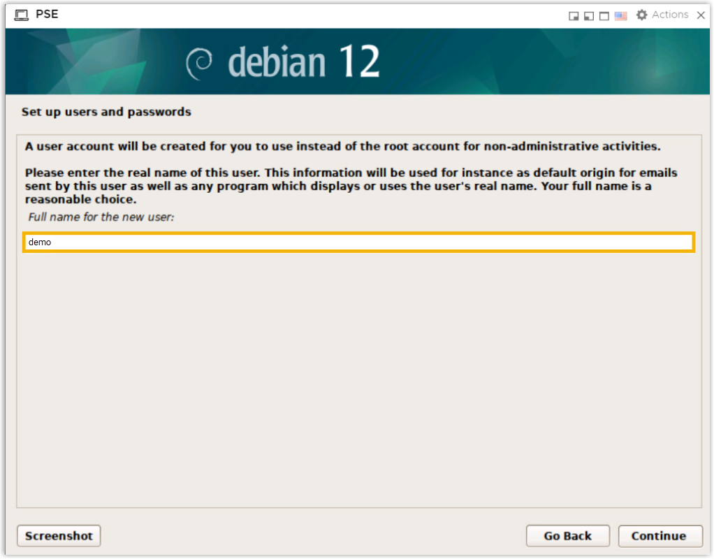 - Log in to the user account.Note: The user account credentials are set during the installation process, as shown below.