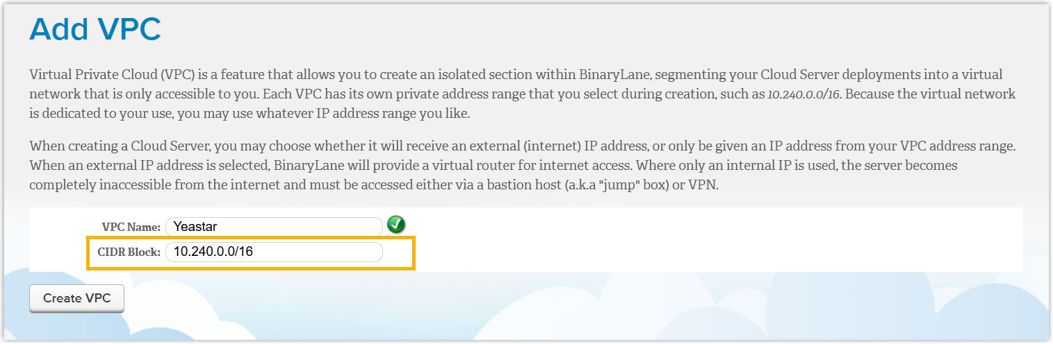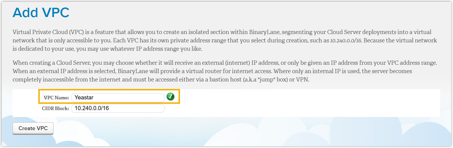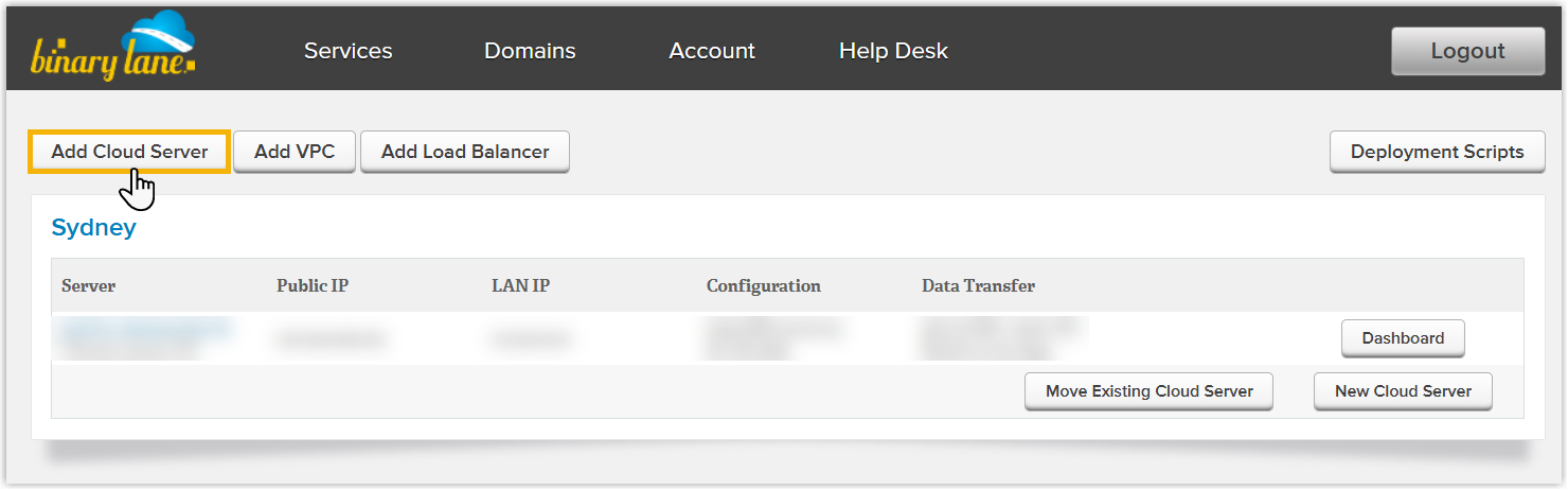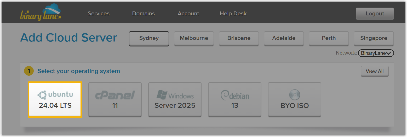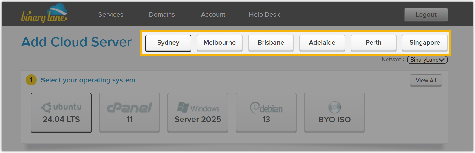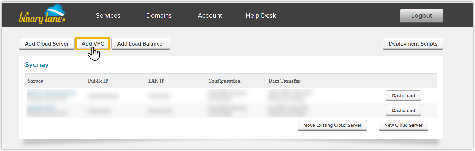 BinaryLane provides a default Virtual Private Cloud (VPC) that allows you to launch cloud servers immediately without any network configuration.