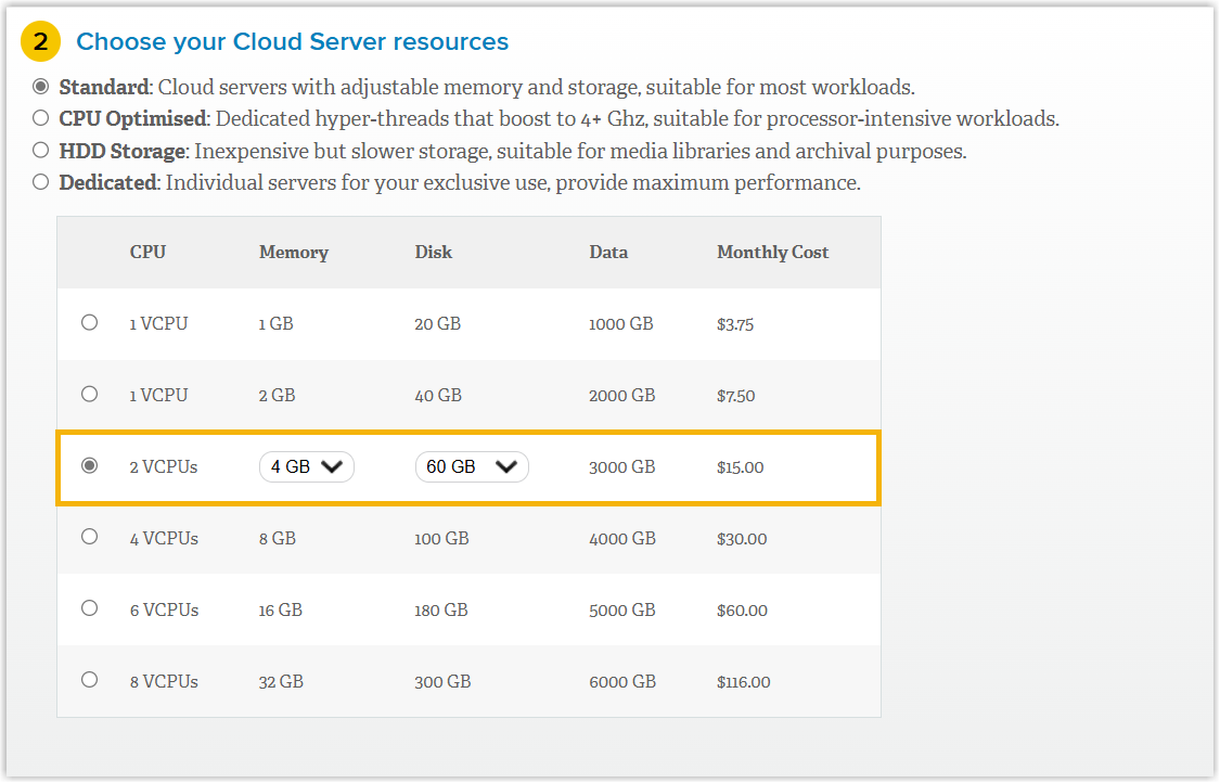 - Choose your cloud server resources based on the Extensions (EXT) and