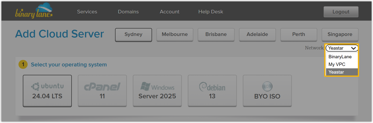 BinaryLane provides fast, reliable cloud servers and Virtual Private Cloud (VPC) networking. This topic describes how to create a cloud server on BinaryLane and install Yeastar P-Series Software Edition on the created cloud server.