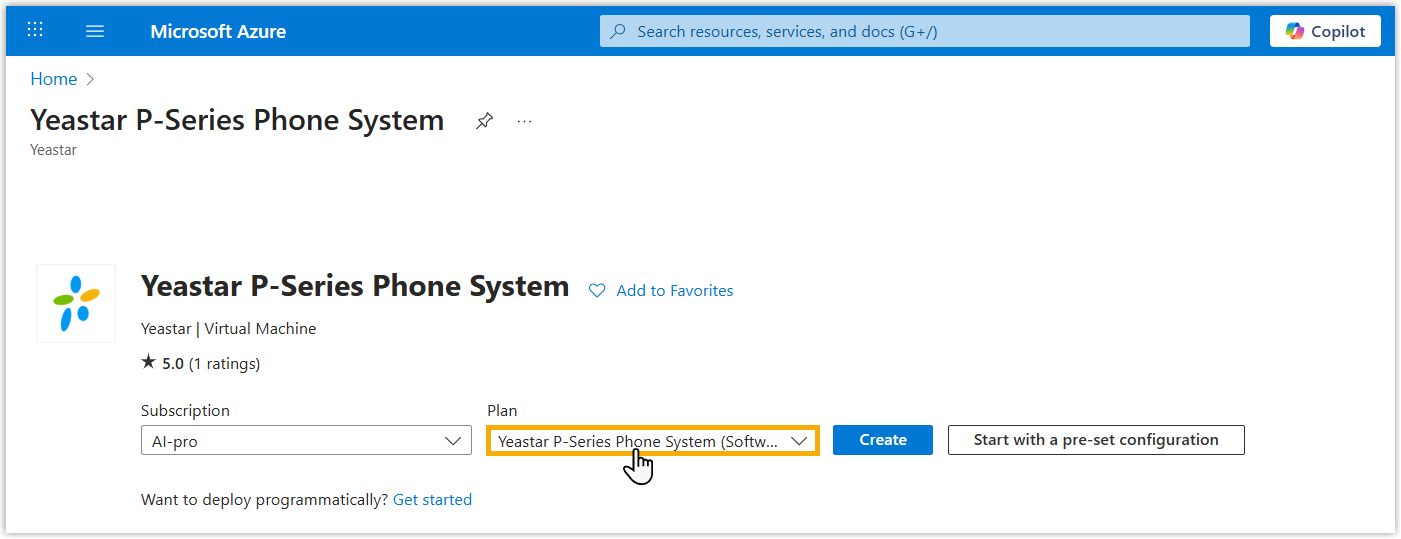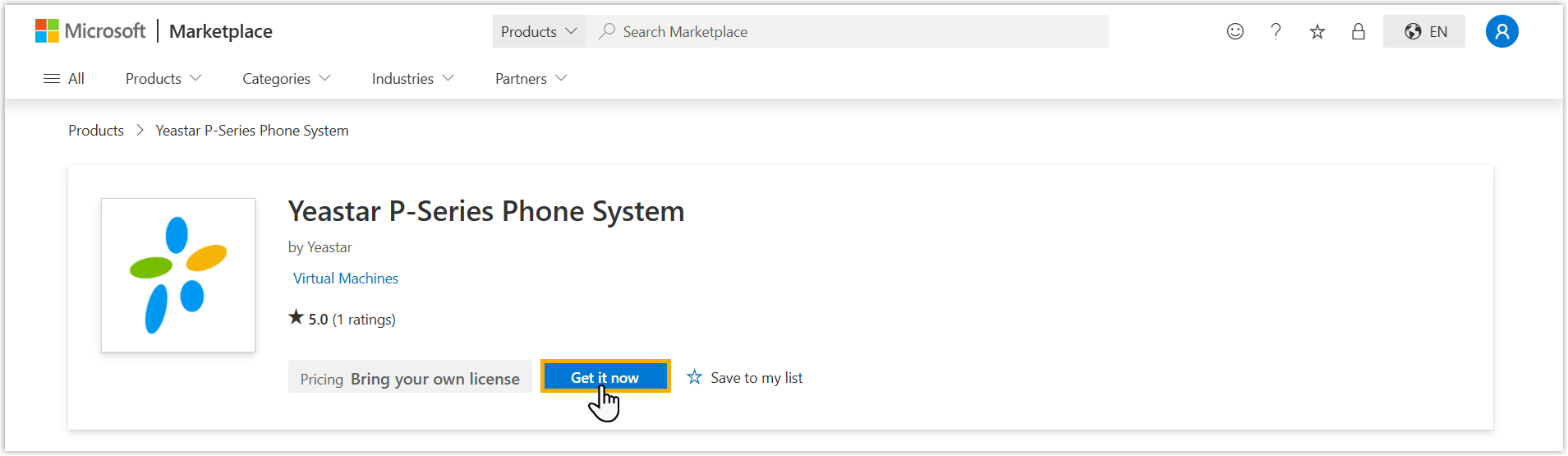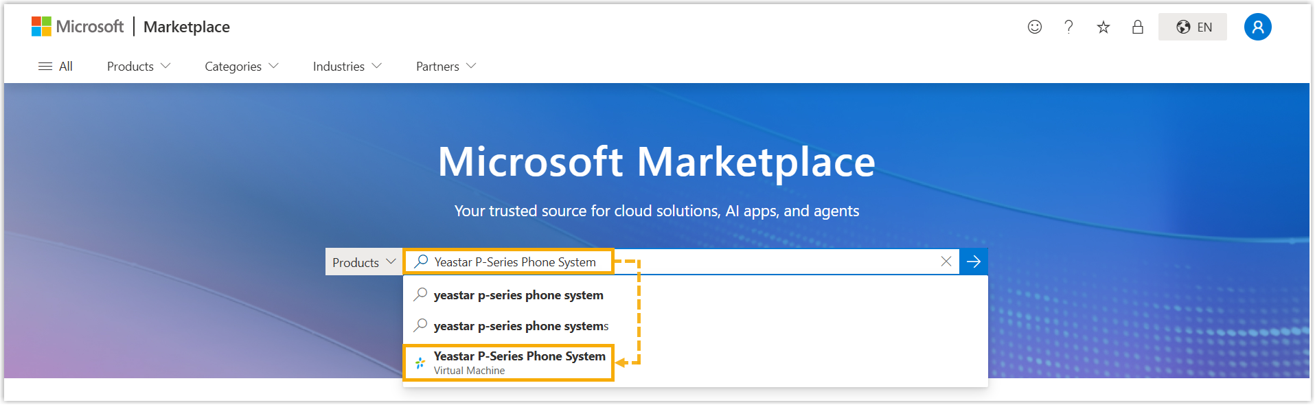 You can install Yeastar P-Series Software Edition on Microsoft Azure directly from Azure Marketplace, enabling quick deployment of Yeastar PBX without manual configuration of the deployment environment.