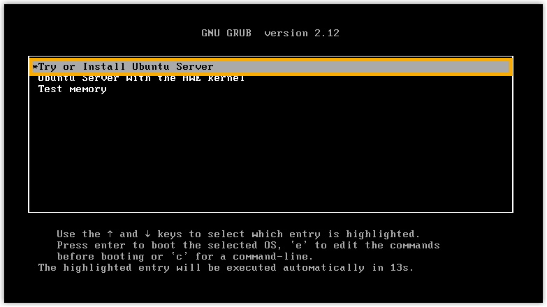 - Select Try or Install Ubuntu Server.