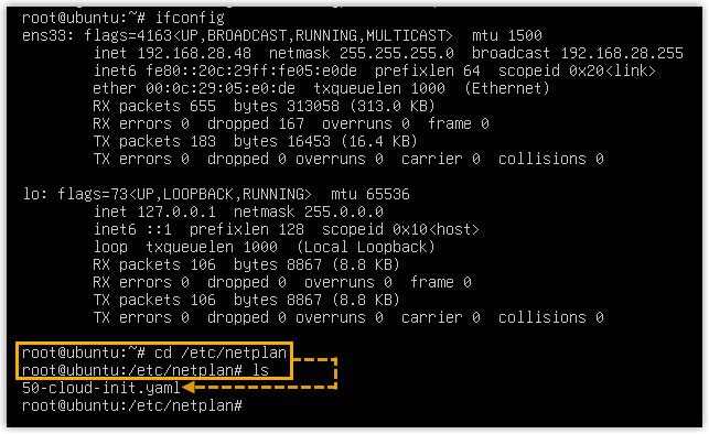 cd /etc/netplan/, then runlsto check the name of the YAML configuration file.