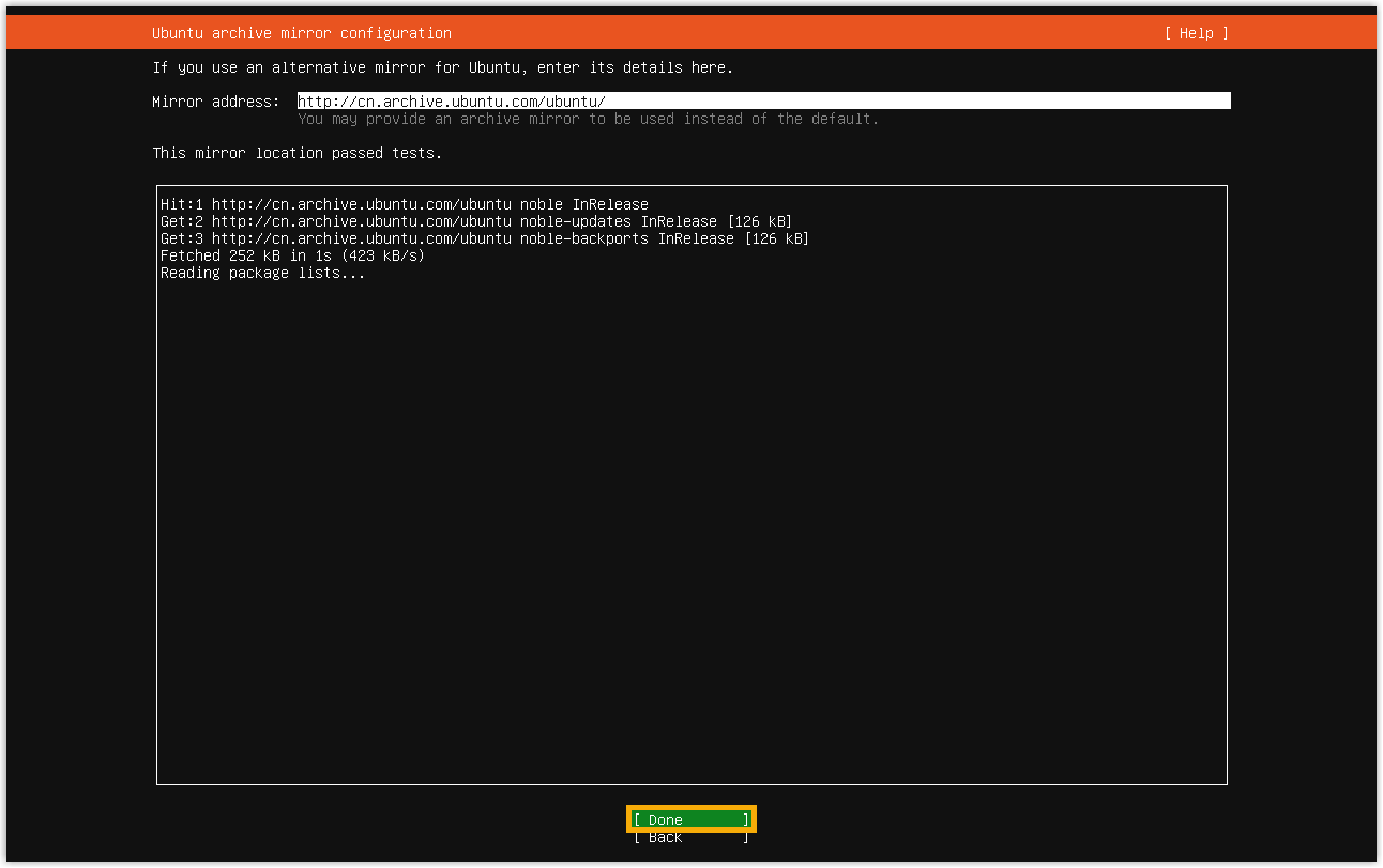 The installer will perform a mirror test by updating the package index.
