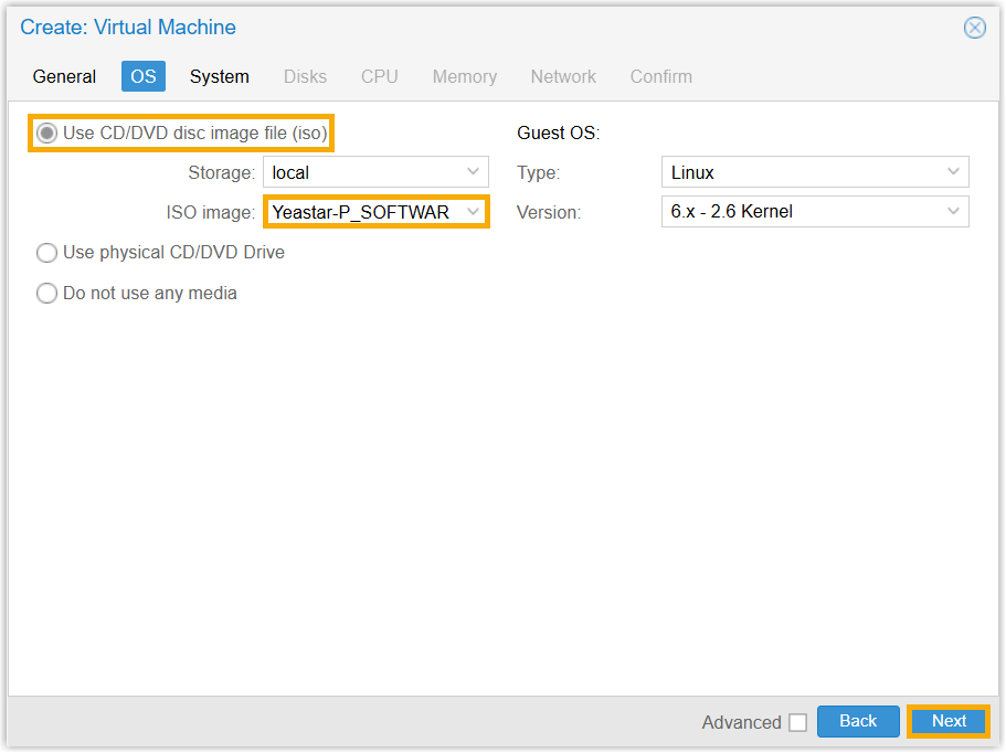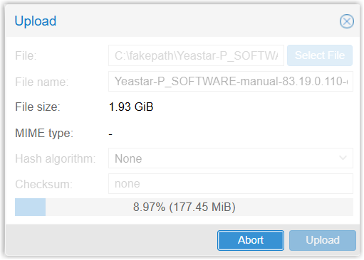 - Upload the ISO image of Yeastar P-Series Software