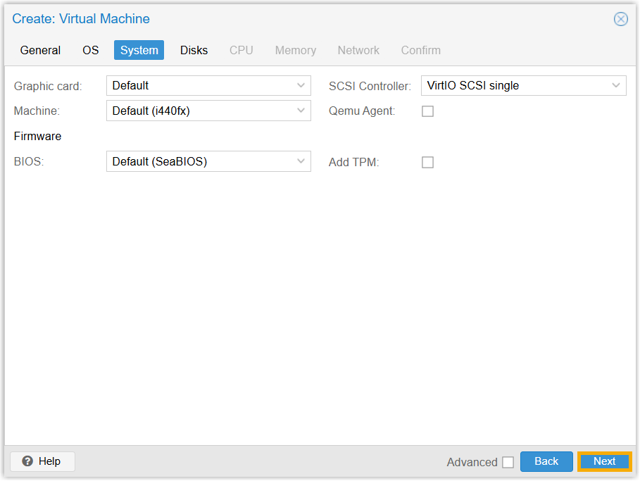 - On System tab, retain the default settings, then