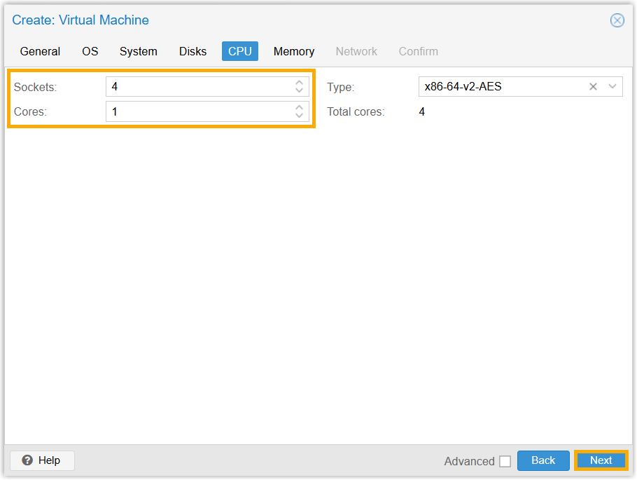 system, then click Next.Note: CPU = Sockets * Cores