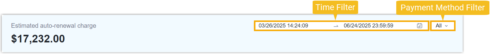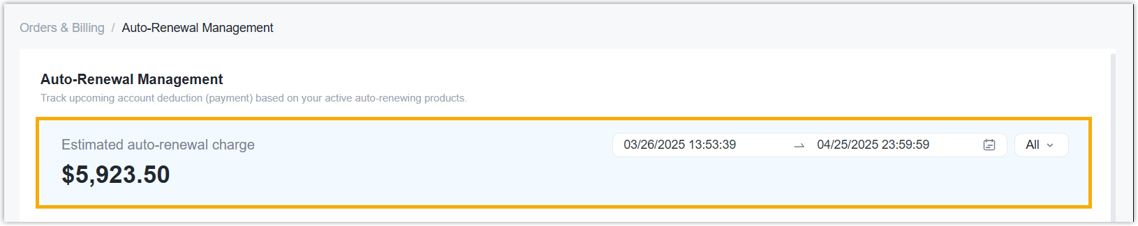 - This section presents you a overview of the estimated auto-renewal fee for the existing subscriptions in the next 30 days.