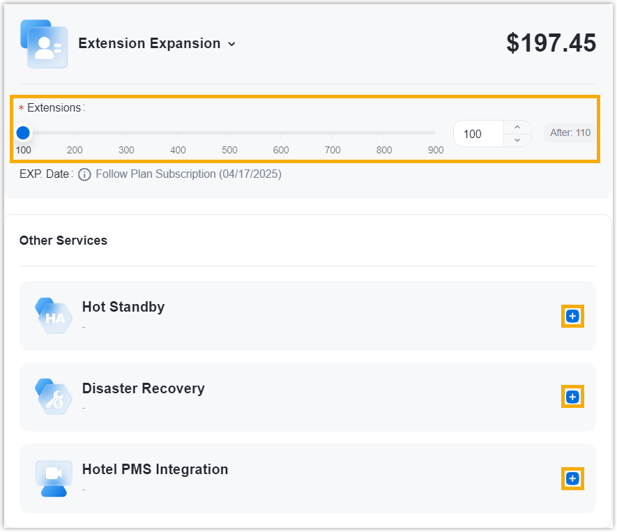 | Extension Expansion | Quantity-based subscription per software PBX. |