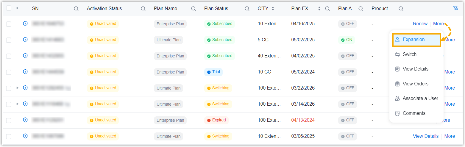 - Log in to Yeastar Partner Portal, go to Products & Purchase.