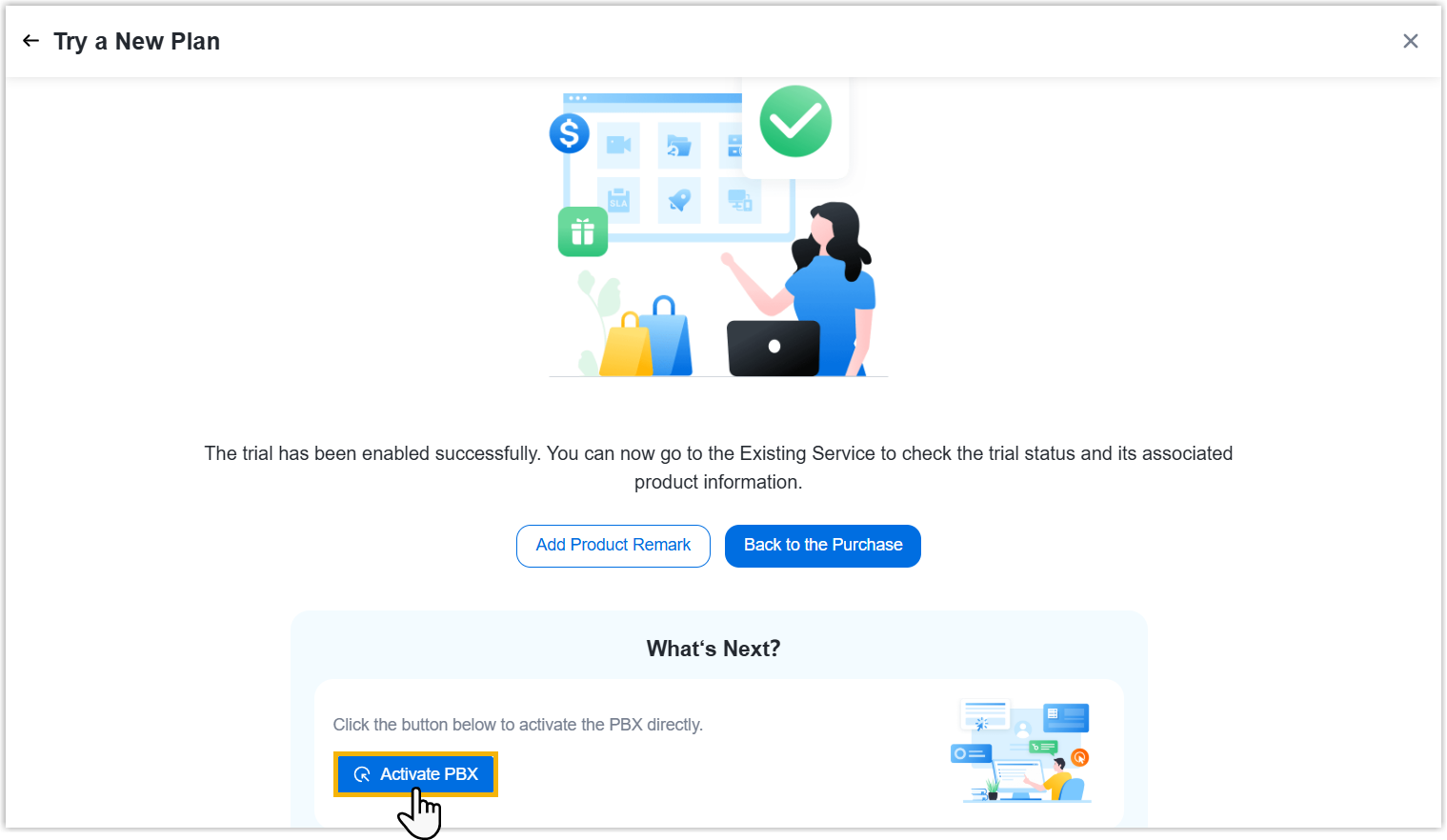 - Click Activate PBX, then activate the PBX