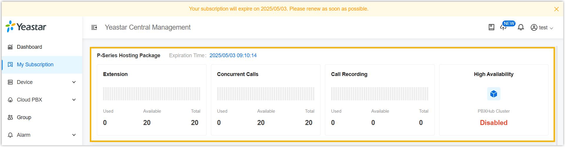 - The hosting package is synchronized to your Yeastar Central Management