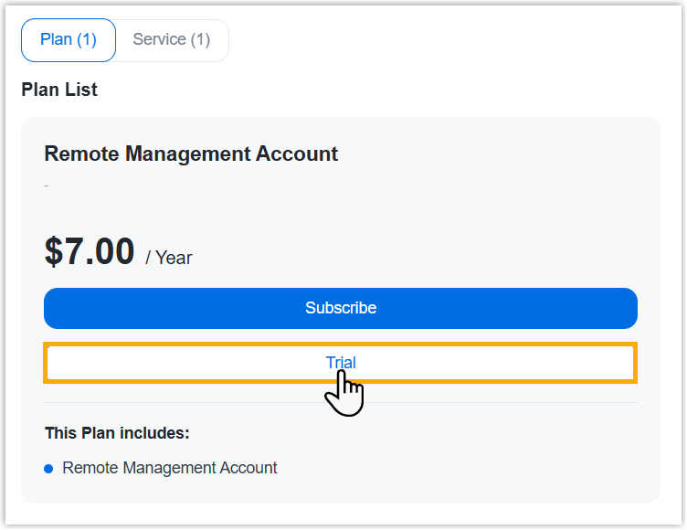 This topic describes how to purchase a commercial Remote Management service. To obtain a free trial, see Obtain Free Trial for Remote Management Service.